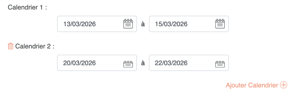 Sélectionnez le calendrier pour les6 jours, les 13-14-15 et 20-21-22 mars 2026.