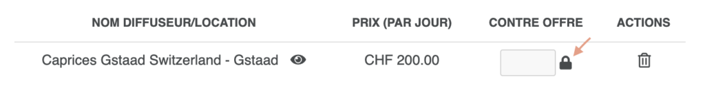 Si vous disposez d’un code promo ou contre-offre, vous pouvez l’insérer en cliquant sur le cadenas à côté du prix.